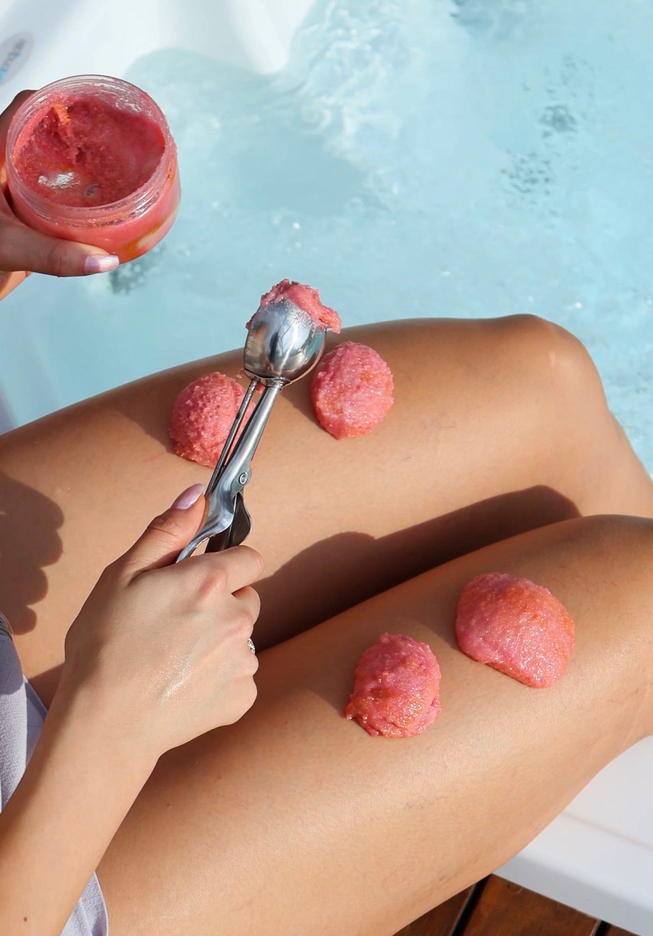 Com a pele limpa e úmida ou levemente seca, aplique uma quantidade suficiente do esfoliante nas áreas desejadas do corpo.